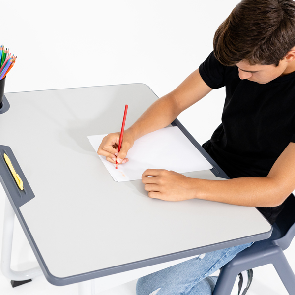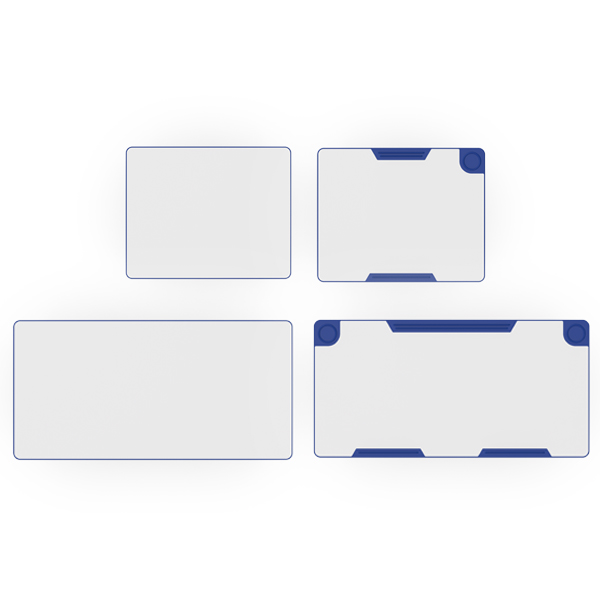 Top in wood chipboard coated with thermolaminate, 20 mm thick, edges in polypropylene, obtained by high pressure injection process, not glued. Polypropylene is fused to the board’s fibers, which gives it high resistance, makes the edge practically indestructible, does not come off, has no joints and is not blunt. With superior resistance to impacts. Absence of toxic products (without varnishes or glues). Rounded corners (R = 30 mm).